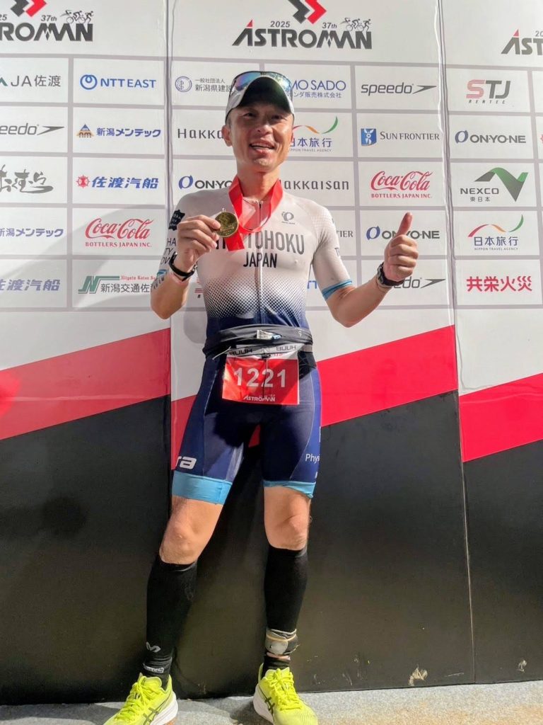 北海道出身。東京から仙台への転勤をきっかけにトライアスロンにのめり込む会社員で一児の父。24年アイアンマン制覇、25年佐渡A制覇の実績を持つトップエイジグルーパー。クリエイティブなアイデアとビジネスセンスを駆使して戦うハードワーカーだが、平日は朝5時からのトレーニングを欠かさない。週末は週末農業に汗を流す「三刀流」を実践。家族への愛情から、毎週水曜日は5歳の娘のためにキャラ弁を作る優しい一面も持つ。