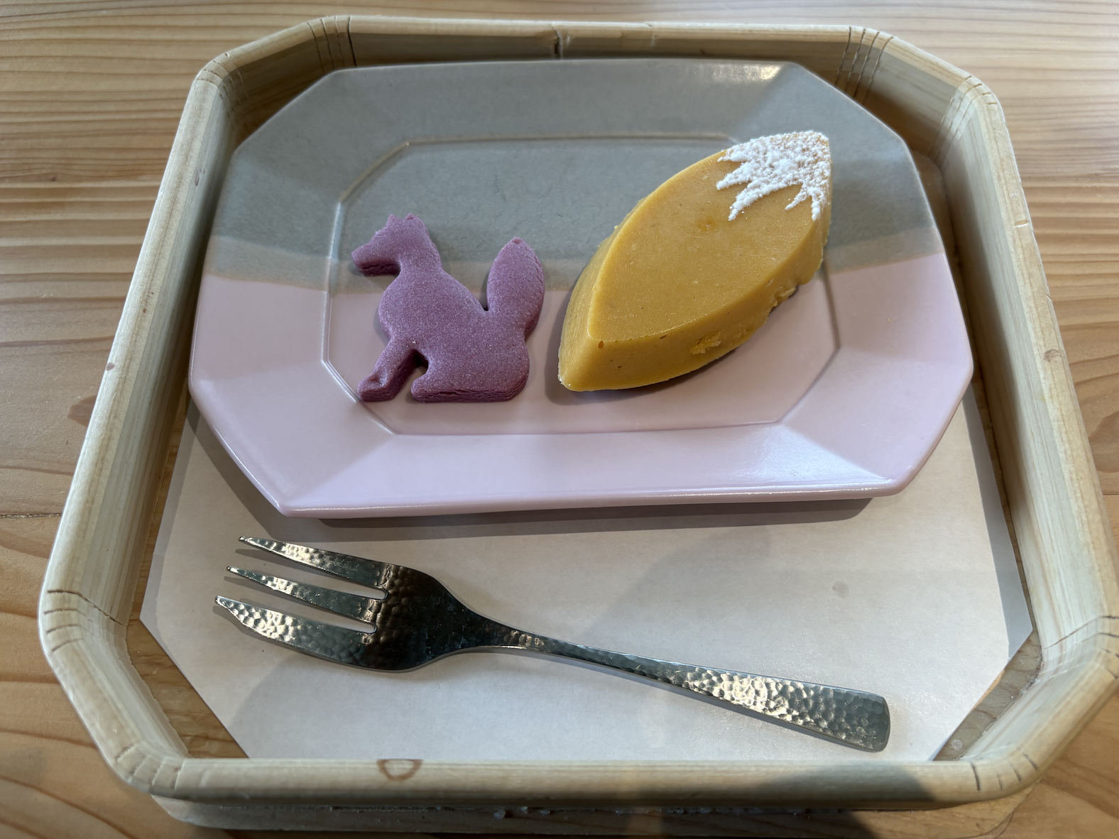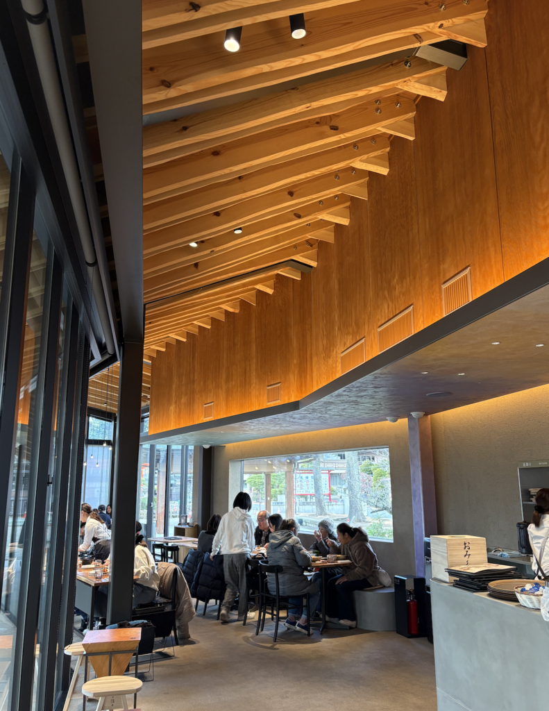 境内の一角にある木造の小さなカフェで、まるで神社の静けさと共鳴するような落ち着いた空間だった。
